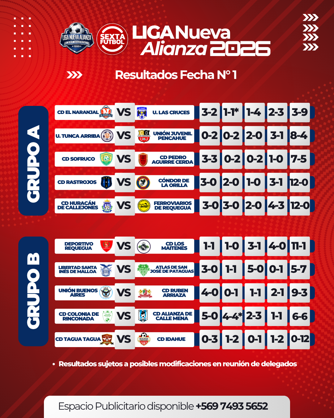 Con una intensa jornada inaugural, se disputó la primera fecha de la Liga Nueva Alianza 2026, donde un total de 10 compromisos dieron el puntapié inicial a la temporada, dejando resultados contundentes, partidos equilibrados y también algunas resoluciones administrativas tras la reunión de delegados.